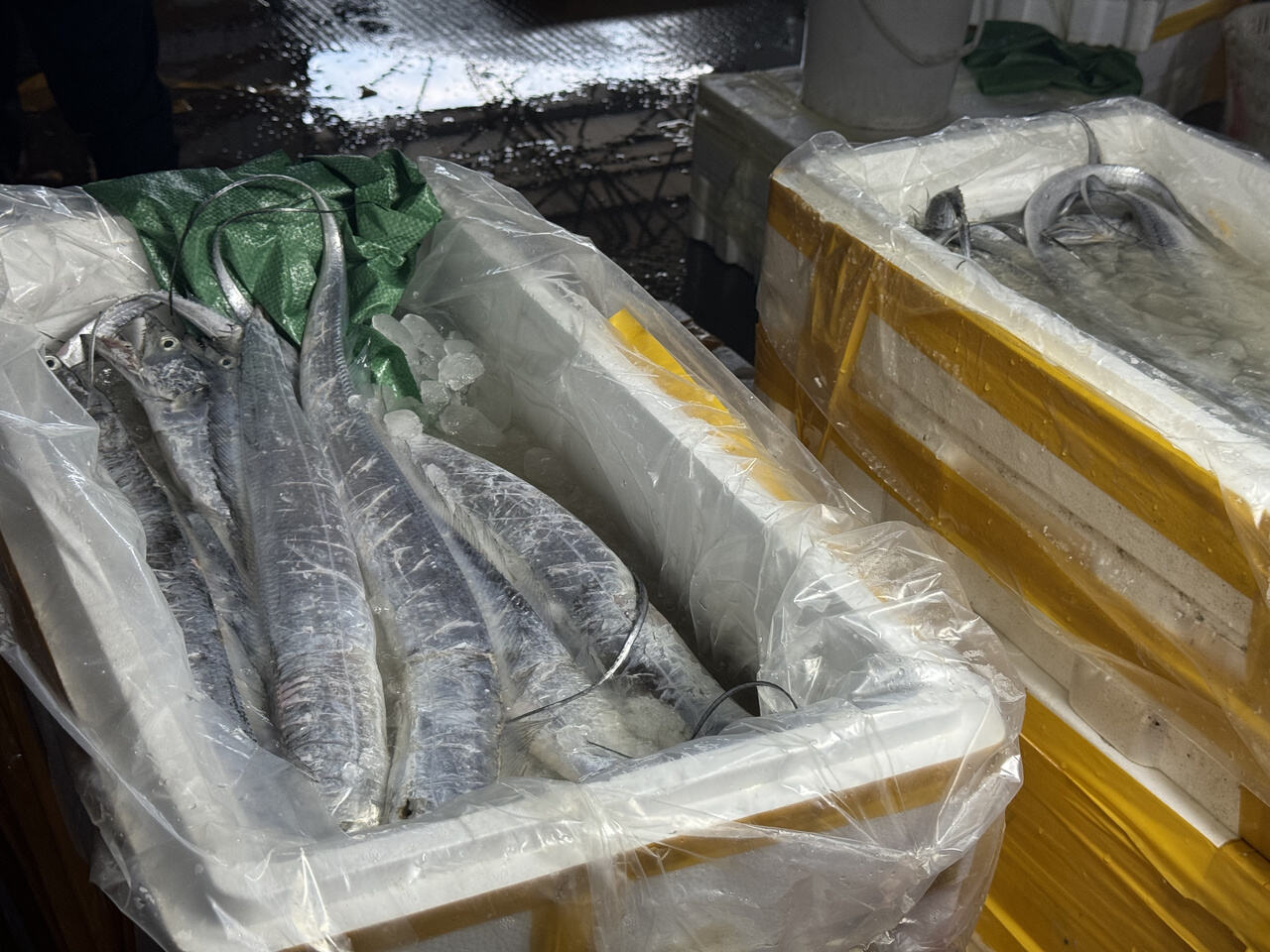 新鲜带鱼 通讯员 供图“今天我卖的主要是马鲛鱼和带鱼,其他货还不多,明天开始货应该会多起来。”经营户黄超根据经验说,刚开始价格普遍会高一些,带鱼的价格是大的每斤60元至70元,小一点的每斤40元,马鲛鱼每斤20元。