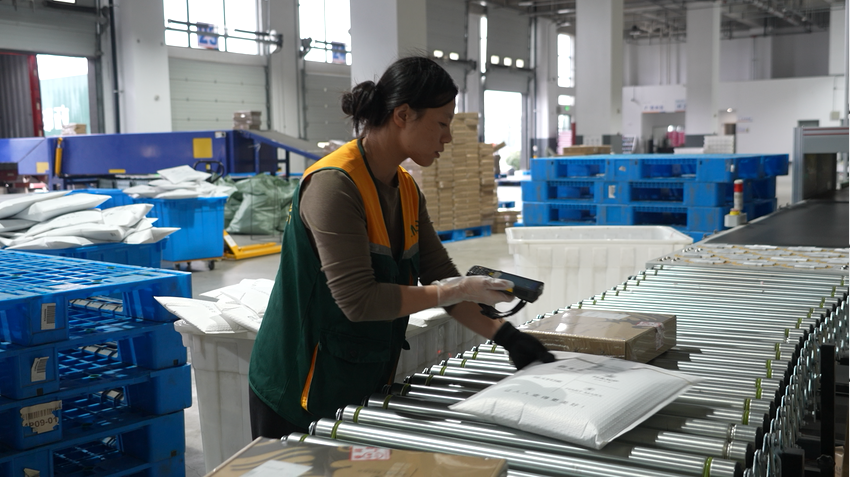 这两天,在宁波市海曙区石碶街道的黄隘战略性新兴产业园,中邮服饰1号智能云仓正以惊人的效率应对“双十一”的物流洪峰。