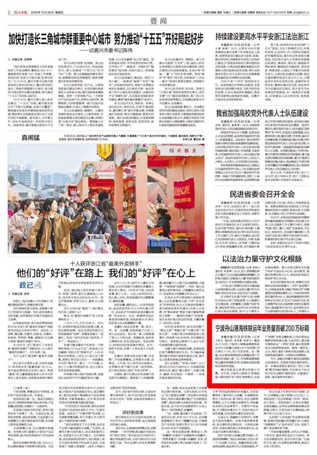 硬件升级则为发展注入强劲动力。被称为宁波舟山港“第六港区”的义乌(苏溪)国际枢纽港,今年6月底投运后,仅6个月业务量便突破8万标准箱,单趟装卸作业时间压缩至约2小时,成为港口海铁联运增长的“新引擎”;铁路北仑港站今年12月3日成功突破“百万箱”大关,为年末冲刺提供了坚实保障,彰显了港口硬件设施的硬核实力。