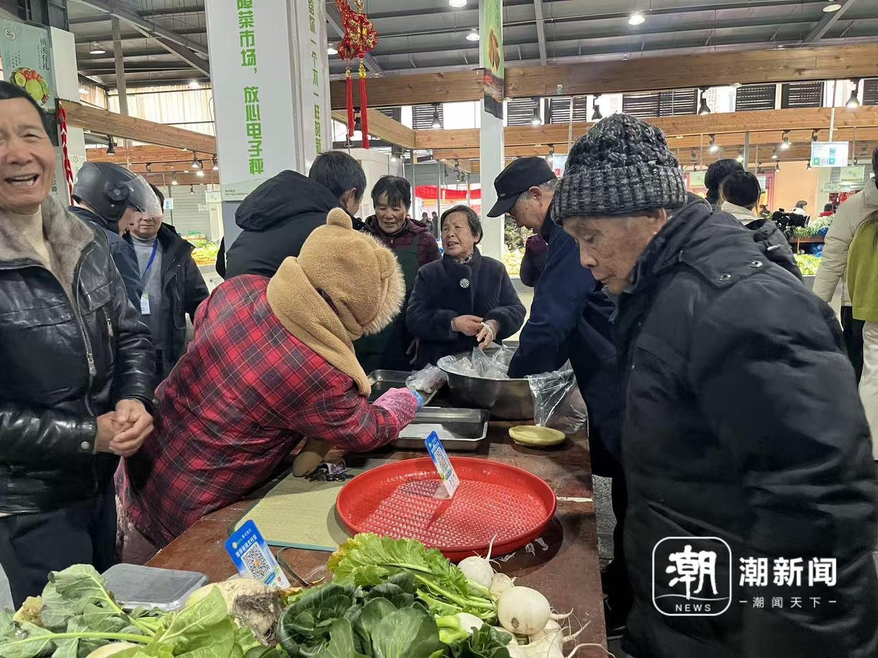 走进市集,冬笋、霜打菜、大白菜、芹菜……各式农户自种蔬菜透着“鲜”味。“这笋都是我挖来的。”栎斜村农户张世德一边麻利地理菜,一边热情招呼。他笑着说,以前在路边日晒雨淋,还总担心影响市容,“现在有了固定摊位,几乎不花钱,心里踏实多啦。”