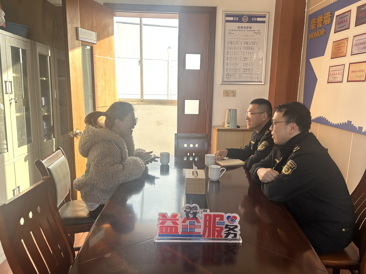 收到求助后,执法人员立即会同市政部门、社区工作人员,一家家企业走访问需求,一个个工人身边听困难。
